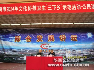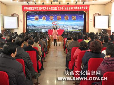 2月18日,陕西省暨宝鸡市2014年文化科技卫生“三下乡”主题示范活动之六·公民道德大讲堂活动在宝鸡市陈仓区西虢宾馆隆重举行。此次活动是由省文化厅、省图书馆主办,区委宣传部、区文明办、区文化广电局、区图书馆承办,由西安外国语大学教授、西安中和文化交流中心主任周世范教授主讲《中国梦与公民道德建设》。区委副书记王万庆出席活动并作讲话。