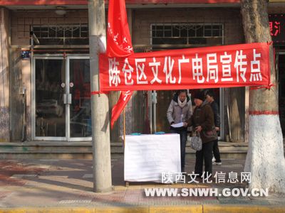活动当天散发《宝鸡市创建全国文明城市应知应会30问》、《陈仓区图书馆读者证申办须知》、《读书的好处》、《全国文化信息资源共享工程宝鸡市陈仓区支中心宣传资料》等信息资料400余份。通过向广大群众宣传创建全国文明城市相关知识,公共图书馆免费开放项目和时间,介绍图书馆职能等文化志愿服务,促进了精神文明建设,提高了居民的生活质量,倡导奉献、友爱、互助、进步的志愿者精神。