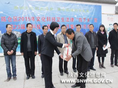 3月26日上午,西山香泉镇游园广场像赶集一样热闹,陈仓区文化、科技、卫生、法律“四下乡”暨第23届“科技之春”宣传月集中示范活动在这里正式拉开帷幕。启动仪式上,陈仓区图书馆向香泉镇综合文化站捐赠图书15册。
