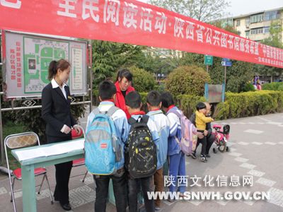 为大力推动“三秦书月.书香陈仓”全民阅读活动,当天我馆将40余种杂志带到活动现场供市民阅读浏览,有效地缓解一些市民因行动不便看书难的问题,并向市民发放《陈仓区图书馆读者办证须知》、《读书的好处》、《未成年人安全防范》、《春季生活小常识》等资料1600余张。