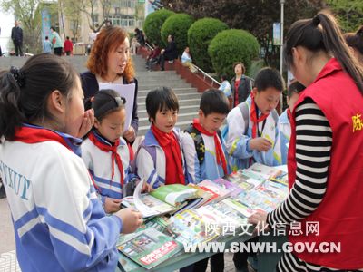 为发挥公共图书馆的文化传播作用,营造有利于培育和弘扬社会主义核心价值观的氛围,用社会主义核心价值观引领社会思潮,凝聚社会共识。2015年4月13日,“三秦书月.书香陈仓”全民阅读活动走进陈仓区育才园广场。