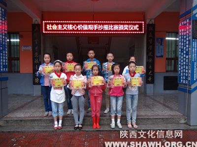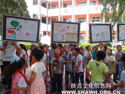 陕图少儿分馆公开展览结束后,陈仓区图书馆将陈仓区地区征集到的所有作品制作成展板,并购买了水杯作为奖品,于6月18日,在西堡小学,为获奖学生颁发证书和奖品,并在校园里展出作品展板,孩子们通过动手参与手抄报的设计与制作,他们有的以一个故事为主题,有的以几个故事为主题,还有的设计出自己的阅读过程,每张手抄报都配上精美的图画或照片,图文并茂,内容丰富。手抄报在学校展出期间,每天吸引不少家长和孩子驻足观看,每看一回都重温不少社会主义核心价值观。
