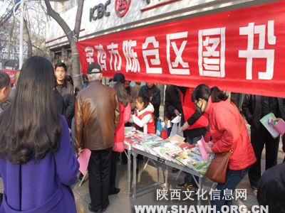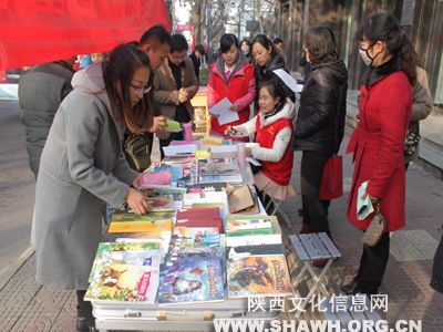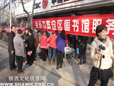 图书馆志愿者像冬日里的暖阳一样,把一份份信息资料传递到群众手里,耐心细致的介绍图书馆办证须知,不畏寒冷,现场为大家办理借书卡,并免费赠送水杯,市民朋友只需要几分钟,就可以通过现场办证将一本本崭新的图书带回家,享受免费的知识大餐。活动当天现场办证15个,展出新书、杂志200多册,散发《陈仓区图书馆读者证申办须知》、《读书的好处》等信息资料500余份。