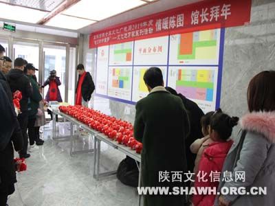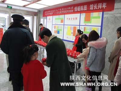 除夕春来到,福猪抱回家,2月5日(大年初一),陈仓区图书馆馆长携员工齐聚文化四馆合一大厦一楼大厅喜迎乙亥猪年到馆读者。