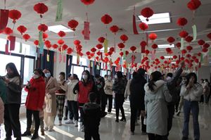 2月4日下午三点,图书馆三楼图书借阅厅红灯高悬,彩谜招展,映照着一张张红灯一样喜悦的笑脸,来猜灯谜的读者络绎不绝,携家带口,或邀朋友,三三两两徘徊在一个个谜语条前,思忖谜底,这边的兑奖处更是长龙一样排队,猜对谜底的读者兴高采烈的领取到了可爱的兔宝宝和图书馆文创产品书签。