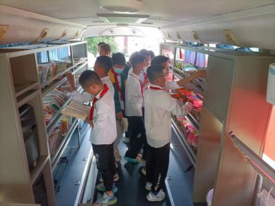 在流动图书车前,孩子们排着整齐队伍,跃跃欲试,都想第一个登上这辆神奇大巴,驶向知识的海洋。在工作人员热情介绍、积极引导下,孩子们争先挑选自己感兴趣的图书,依次进行选书。拿到书的孩子们直接在操场上席地而坐,探索书籍的奥秘与精彩。孩子们旁若无人地静静阅读,三三两两交流阅读的内容,一切美好尽在阅读之中。