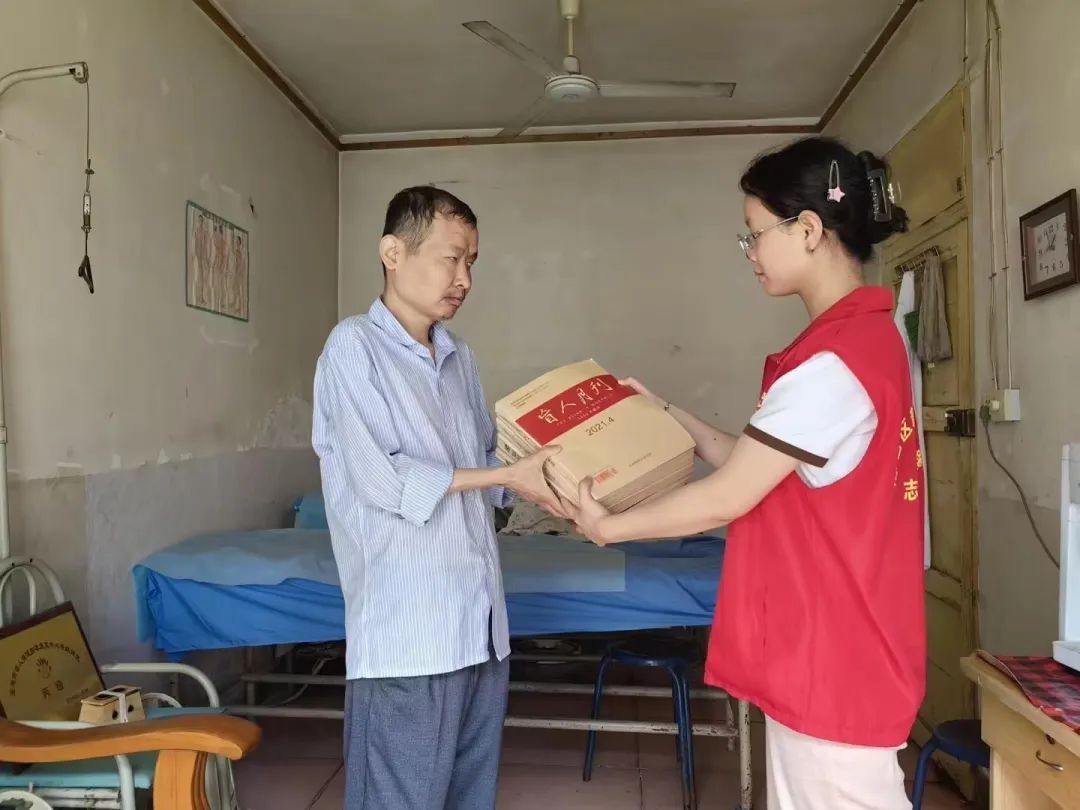我国约有1700万视力残疾人,这是一个数量庞大、特别需要扶助的弱势群体。为深入学习宣传贯彻习近平新时代中国特色社会主义思想,广泛开展扶残助残关爱行动,不断丰富视障人士的精神文化生活,切实发挥图书馆文化助残作用,5月31日,陈仓区图书馆向开按摩店的视障读者张蕴开展送图书上门服务活动,送去盲文杂志《盲人月刊》、《知识就是力量》2种4册。