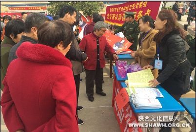当天上午,土桥村村委会文化广场歌声飞扬,人潮涌动,启动仪式后,农业、科技、卫生、文化等多家单位通过悬挂横幅、展出版面、散发资料、咨询服务、赠送礼品等多种形式向群众普及文化科技卫生知识,卫生系统的服务点前围拢了就医咨询的群众,科技展板前有关科学养殖种植、农业致富方面的信息资料被群众一抢而空,最惹眼的还是文化系统的送戏下乡,新声剧团的秦腔名角们演出的老百姓看不够的经典秦腔剧目,真可谓“台上秦腔一声吼,台下观众一片彩”,图书馆的文化服务更是深入人心,色彩鲜艳的牙杯、琳琅满目的笔,吸引了广大群众的眼球,人们欣喜的领到礼品的同时也关注了图书馆服务指南、图书馆法的颁布实施。作为知识宝藏的图书馆,记忆和储存了优秀的传统文化,推广全民阅读、建设书香陈仓,从而提升全民文化素质是今天我们宣传的重点,将文化的种子播撒在城乡,让书香弥漫在山村,让文化的春风惠及每一个老百姓,满足群众最基本的文化需求是今天乃至未来的发展目标,看到一个个求知若渴的孩子,了解到群众对图书馆的热情和关注度,我们感到三下乡活动的开展只是一个起点,如何把三下乡常态化,让图书馆深入人心,让最先进的文化引领群众的思想,才是文化下乡的灵与魂。(杨宝霞)