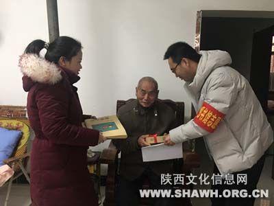 陈仓区图书馆馆长孙晓梅听说光芒村盲人读者高著喜爱阅读,便决定为他免费送一台听书机。今天上午,馆长孙晓梅冒着严寒带领工作人员前往光芒村,将盲人听书机送到了高著的手中。