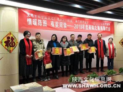 “阅读之星”是依据文献借阅系统自动产生读者借阅量信息,我馆选取年度借阅量前30名的读者并进行表彰奖励。会上,读者代表符向宁说:“感谢图书馆能提供这样一个优雅的环境为市民服务,我经常来看书借书,把书带回家与家人一起分享,现在我的孩子也喜欢看书,每次来图书馆工作人员都特别热情,我们一家人都喜欢来图书馆”,随后,陈仓区文化广电局局长杨继晓对获得“2018年度阅读之星”读者颁发奖品,图书馆馆长孙晓梅颁发奖状并为与会人员做新年贺词。会后,向全体人员发放精美礼品。